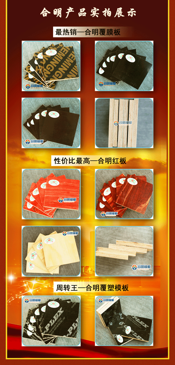 合明模板,堅(jiān)硬耐磨、密實(shí)牢固、平整細(xì)膩、柔韌性好、超強(qiáng)防水、不易脫膠、周轉(zhuǎn)次數(shù)高,贏得廣大用戶青睞。合明模板質(zhì)量看得見,高壓鍋沸水煮2小時(shí)不開膠,質(zhì)量保證,好評(píng)不斷,品牌知名度高,獲得“中國(guó)建筑模板十大品牌”、“知名商標(biāo)”等多項(xiàng)榮譽(yù)。合明共有建筑模板近200種,如一建筑模板超市,產(chǎn)品種類多,可挑選,客戶都能在合明找到適合自己工地的產(chǎn)品。